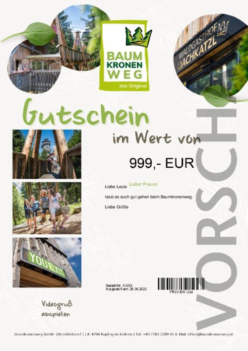 Gültig für alle Leistungen am Baumkronenweg (Baumhotel, Gasthof Oachkatzl, Bogenparcours, Youexit und Eintritt zum Baumkronenweg)